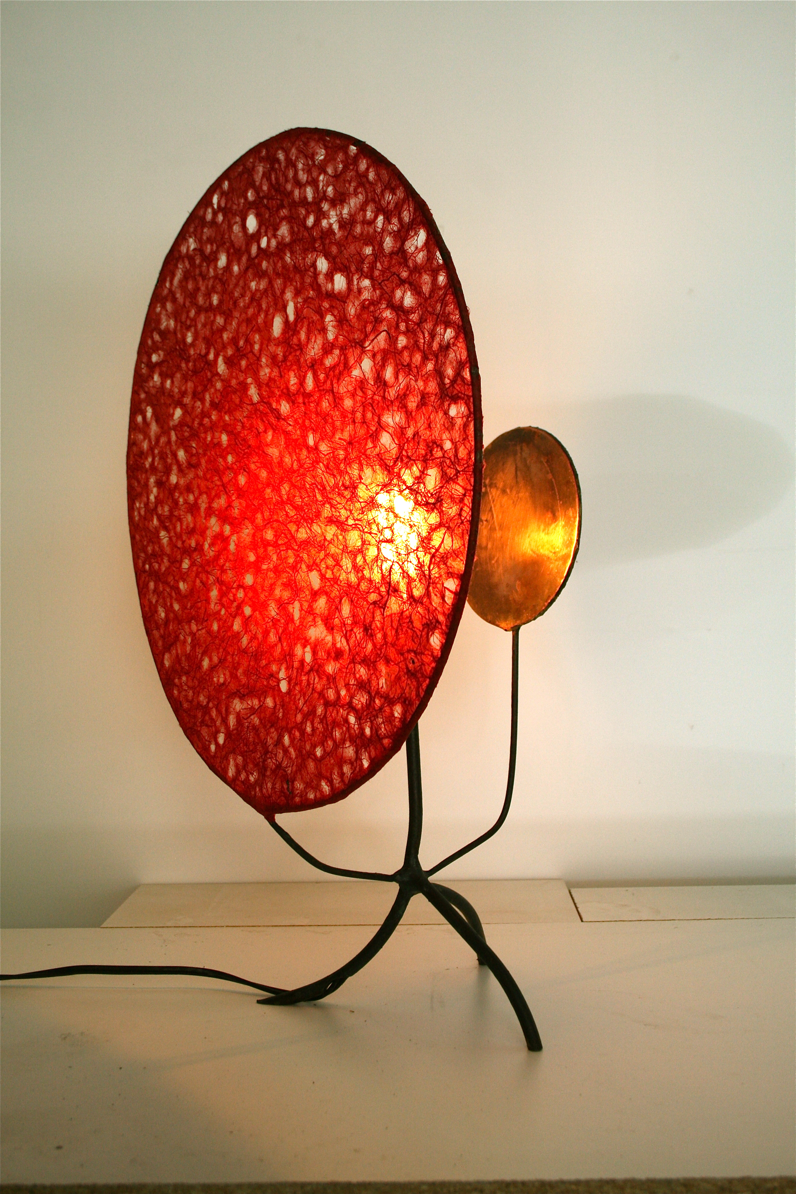 HomeTable LampsJapanese lace paper shadeJapanese lace paper shade with reflecting copper circle 1 bulb 2ft H